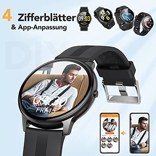 Specification: Smartwatch, AGPTEK 1,3 Zoll runde Armbanduhr mit personalisiertem Bildschirm, Musiksteuerung, Herzfrequenz, Schrittzähler, Kalorien, usw. IP68 Wasserdicht Fitness Tracker für iOS und Android, Schwarz