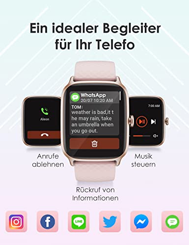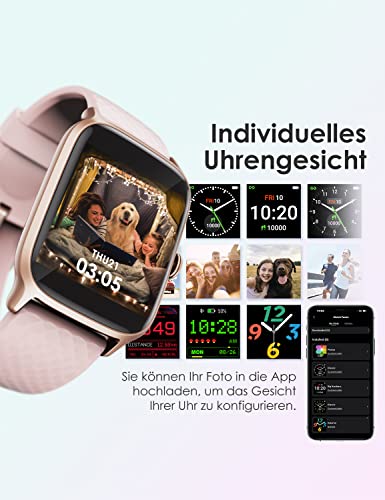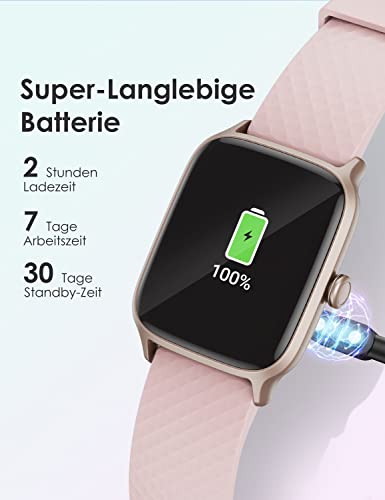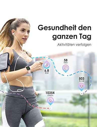 Specification: Smartwatch Damen, Fitnessuhr Damen mit Schlaf- und Pulsmesser, 5ATM wasserdichte Smartwatch für Kinder und Herren, Schrittzähler Uhr Damen, Kompatibel mit iOS und Android, Activity Tracker(Rosa)