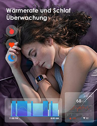 【24/7 Gesundheits- und Schlafüberwachung】 Fitness Tracker mit Pulsmesser unterstützt eine 24 Stunden SpO2- und Herzfrequenzüberwachung, damit Sie ihre gesundheit besser verstehen können. Außerdem überwacht die Smartwatch effektiv Ihre Schlafqualität und bietet eine umfassende Analyse der Schlafqualität (Tiefschlaf, leichter Schlaf und Wachzeit).