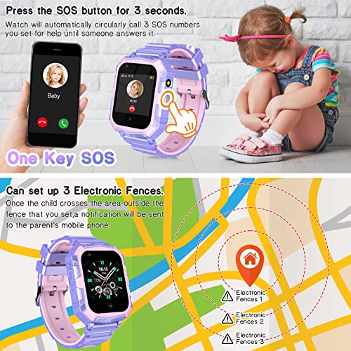 4G Kinder Smart Watch für Jungen Mädchen, Mingfuxin Wasserdichtes Smartwatch-Telefon mit GPS-Tracker WiFi-Videoanruf SOS-Kamera-Armbanduhr für Kinder 3-14 Geburtstag Weihnachten Geschenke(Violett)
