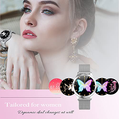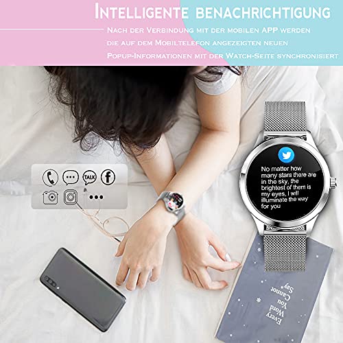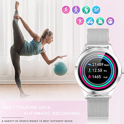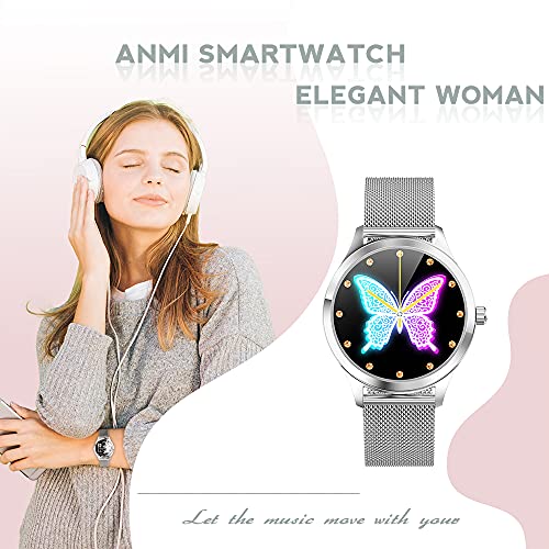 ANMI Smartwatch Damen Silber, IP68 Wasserdicht Fitness Tracker Smart Watch Damen,mit Weibliches Zyklusmanagement Pulsuhr Blutdruckmessgerät Schlafmonitor Damen Armbanduhr für Android iOS(Silber)