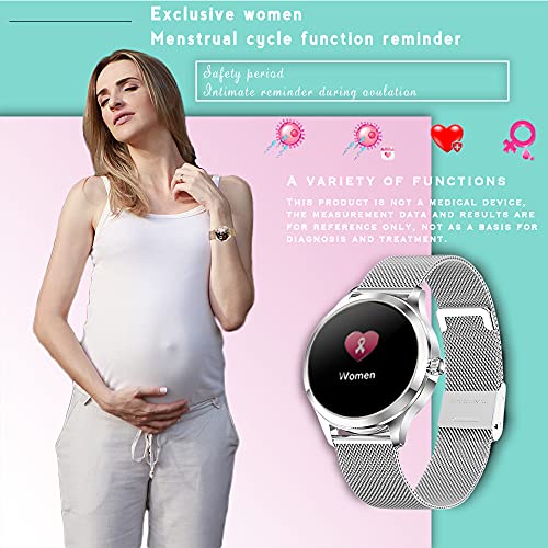 Specification: ANMI Smartwatch Damen Silber, IP68 Wasserdicht Fitness Tracker Smart Watch Damen,mit Weibliches Zyklusmanagement Pulsuhr Blutdruckmessgerät Schlafmonitor Damen Armbanduhr für Android iOS(Silber)
