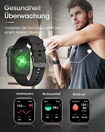 Specification: KIQULOV Smartwatch Herren mit Telefonfunktion, 1,8 Fitnessuhr Herren, Fitness Tracker Uhr mit 120+ Sportmodi, Herzfrequenz, SpO2, Schlafmonitor, Schrittzähler usw. Armbanduhr für Android iOS