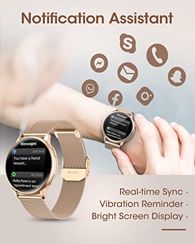 Specification: Smartwatch Damen mit Telefonfunktion 1,32 Zoll HD, XINGHESF 2022 Smartwatch mit Menstruationszyklus, 180+UI, 19 Sportmodi, Schlafmonitor, Pulsuhr, SpO2, Fitnessuhr Damen für Android iOS Gold