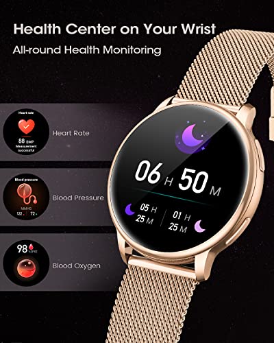💖【Gesundheits-Butler, Körper und Geist schützen】Lebst du heute ein gesundes Leben? Smartwatch Damen verwendet den fortschrittlichen optischen Herzfrequenzsensor LC11 und ist mit einem leistungsstarken KI-Algorithmus gesegnet, der Gesundheitsdaten wie Herzfrequenz, Blutdruck, SpO2 und Schlaf überwachen und sich in alle Richtungen um Ihre Gesundheit kümmern kann. Es unterstützt auch das Management des Menstruationszyklus von Frauen und ermöglicht es Ihnen, sich selbst besser zu verstehen.