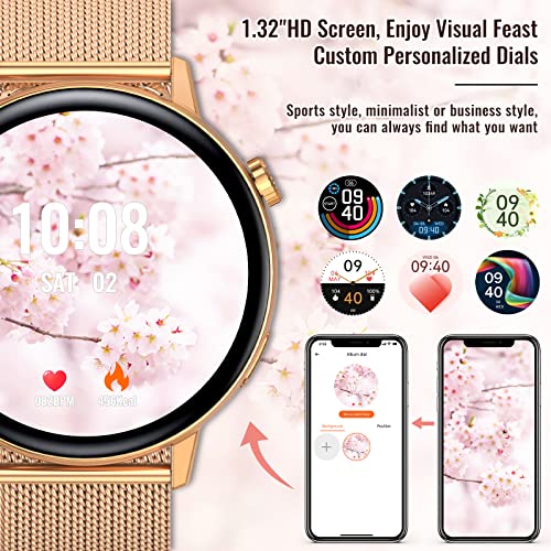 📱【Smartwatch mit HD-Touchscreen und Personalisierte Dial】Die fitnessuhr damen verwendet einen 1,32-Zoll-HD-Farbbildschirm,360 * 360 HD,und bietet Ihnen ein hervorragendes Gefühl für Design und ein breites Sichtfeld Verschönern Sie Ihre Outfits und erleichtern Sie Ihr tägliches Leben und Ihren Sport.Mehr als 200 verschiedene Arten von Zifferblättern sind in der APP verfügbar.Sie können auch jeden beliebigen Hintergrund in Ihrer smartwatch App anpassen.